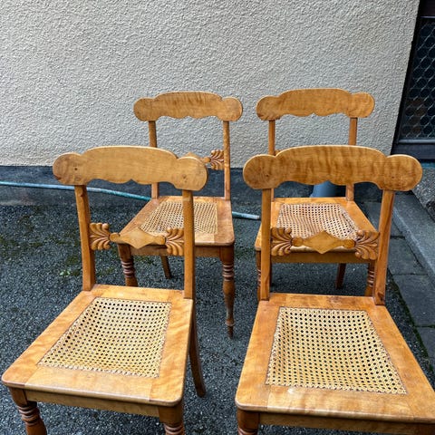 5 st äldre trästolar med fin patina