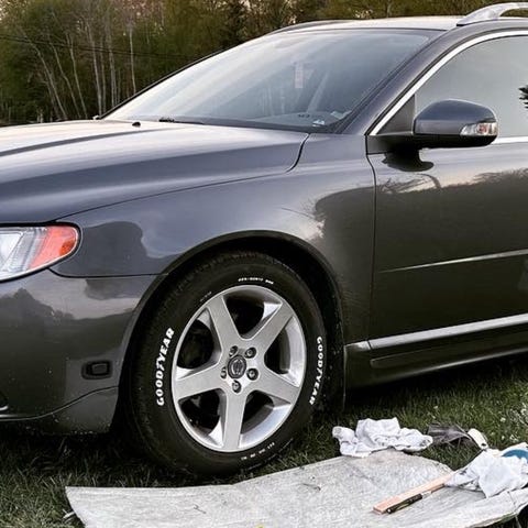 Däcken slitna och gamla, punka på ett.