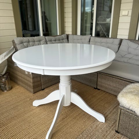 Vitt köksbord, 100 cm i diameter eller med utdragen iläggsskiva 140×100.