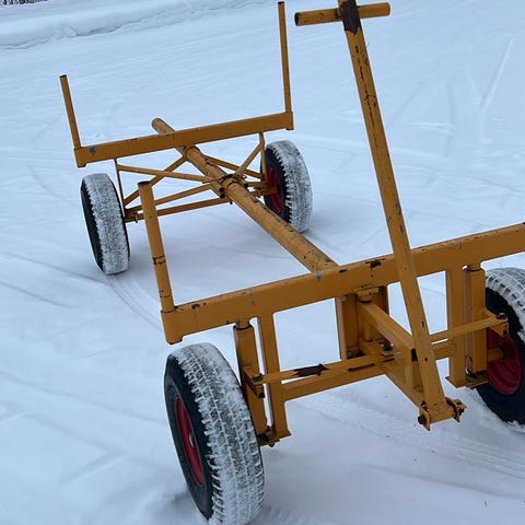 Röd Husqvarna Transportvagn 275 trädgårdsvagn med dragstång för åkgräsklippare. Stabil vagn med två hjul och rejäl lastlåda i metall.