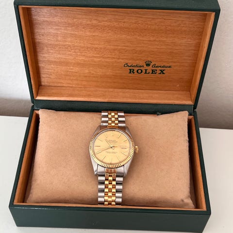 Säljer nu min Rolex Datejust ref. 16013 från 1981. En tidlös klassiker i guld och stål (two-tone) med den ikoniska champagne-tavlan som passar vid alla tillfällen.