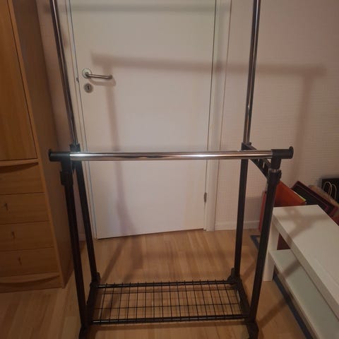 En praktisk, dubbel klädstång med skohylla.²w