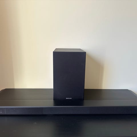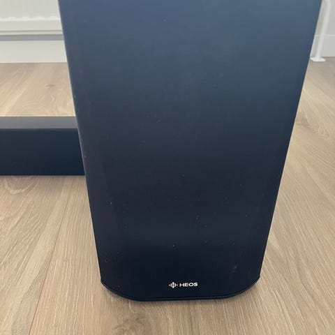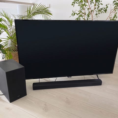 Harman Kardon SB12 soundbar med tillhörande trådlös subwoofer i svart. Snygg och diskret design som tar lite plats vid tv-bänken