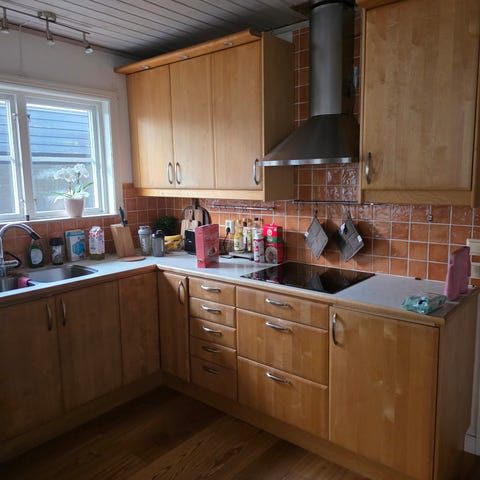 • Köksstommar och skåp i bok fanér (fräscha och hela)