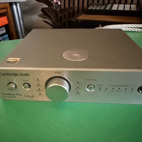 Benchmark DAC1 DAC/hörlursförstärkare med volymratt på fronten och två hörlursuttag. På baksidan finns både balanserade XLR-utgångar och flera digitala anslutningar för enkel inkoppling i anläggningen.