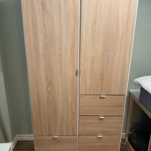 IKEA garderob med hylla, klädstång och lådor vit