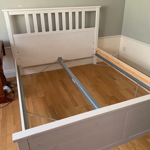 Hemnes sängstomme 160 x 200 med träribbor. Passar med skummadrass eller resårbotten-madrass