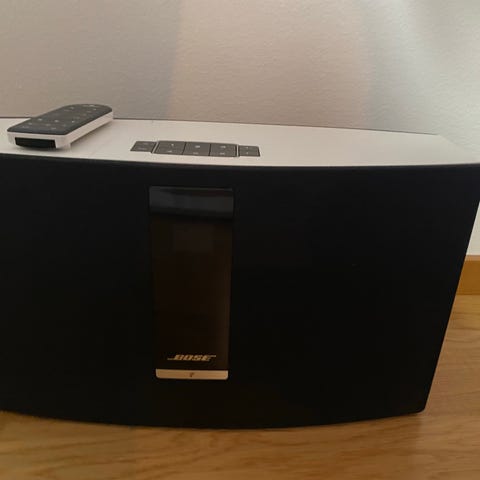 Säljer en Bose SoundTouch 30 i mycket gott skick. En kraftfull trådlös högtalare med fylligt och klart ljud som passar perfekt för både musik och radio i hela hemmet.