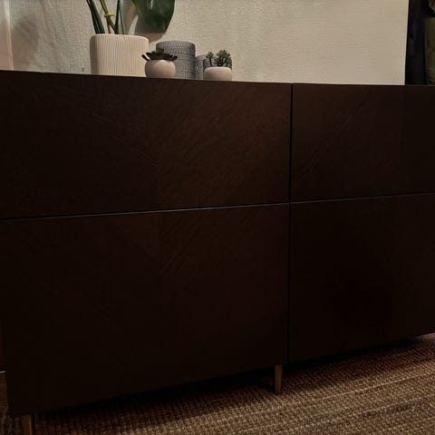Ikea Malm byrå med 6 lådor och svart glasskiva