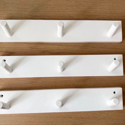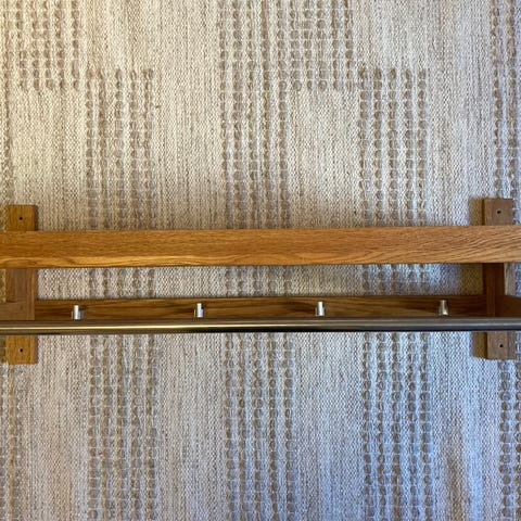 Säljer en fin Kroklist från Essem Design i vit färg och mässingkrokar som kan fällas ut och in. Inga skruvar medföljer.