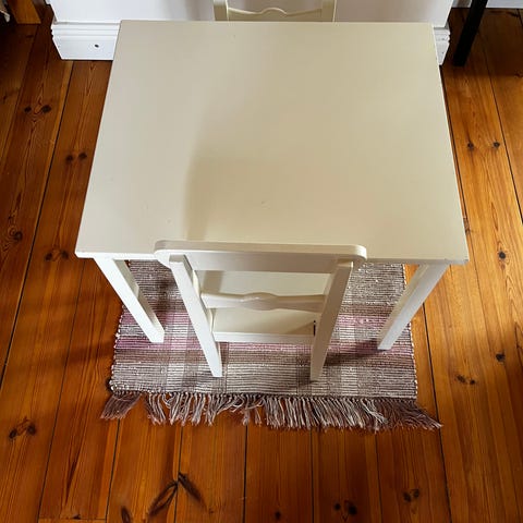 Vitlackat möblemang i utmärkt skick. Vid fest har barnbarnen suttit vid bordet men nu är de för stora. Har fungerat utmärkt.