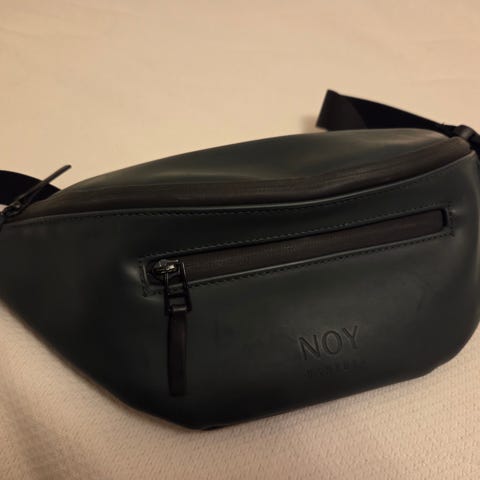 Svart axelremväska i syntetmaterial med justerbart band och rejält spänne. Huvudfack med dragkedja, flera innerfickor och en extra dragkedjeficka på baksidan.