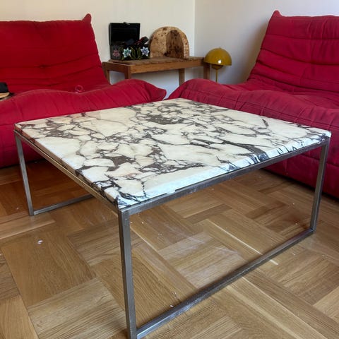 Säljer vårt soffbord som endast är 3 månader gammalt. Specialbeställd toppskiva/stenskiva från Cosentino i Dekton. Bara skivan har kostat oss 7500 kr. Underrede i svartlackad stål.