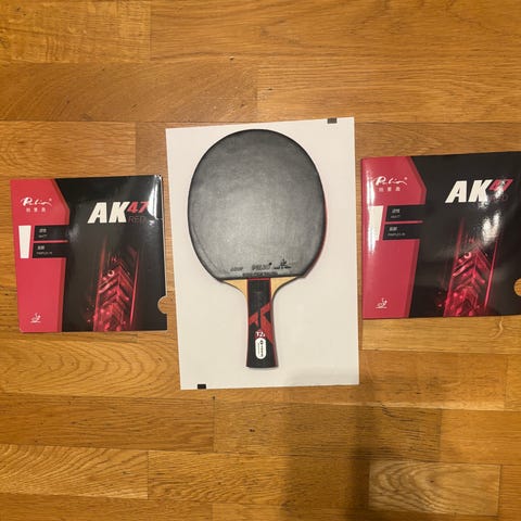 Komplett ny pingisracket. Efter att ha testat hundratals kombinationer av stommar och gummin senaste åren är denna en av de bästa kombinationerna. Fantastisk fart, båge och kontroll med Loki K2 och Palio -AK47 blå svamp ( ej klibbig och gul har mjukast svamp i serien). Framförallt har den extremt (!) stark förmåga att generera skruv. Fördelen med de hårda kinesiska svamparna är att de håller kvar och lyfter bollen även vid väldigt stängd vinkel ( tunn träff för slow spinny loop tex eller serv och skär med maximal spin). Här sviker väldigt många andra icke kinesiska gummin. Butterfly Dignics 64 och Dignics 05 exempelvis slip vid tunn träff. Stänger du vinkeln och drar en hård tunn träff känner du initialt grepp från ytskiktet och nabbarna under. Men svampen är inte kompakt och hård nog att hålla kvar (dwell) och lyfta bollen med rotation. Istället lossnar bollen, eller ”slirar” av racket och landar bakom dig istället för på bordet. Enda Butterfly-gummina som klarar tunn träff utan att slira är Dignics 09C , Tenergy05hard och Zyre-03. Inte konstigt att världseliten föredrar just dem. Men i princip varenda kines kör fortfarande med DHS Hurricane, dvs hård kinesisk svamp och greppigt ytskikt. Men för europeiska spelare är DHS gummina så döda i studsen att det knappt går att spela med. Omställningen i teknik är för stor. Palio AK47 däremot är kompromissen. Det bästa av båda världar. Kinesisk spin med Euro feel. Och speciellt på den här stommen. Stommen som är lackad med rätt lack och metod kommer skydda stommen for life (och även skonsam för svampen vid byten av gummin. (157,9g)