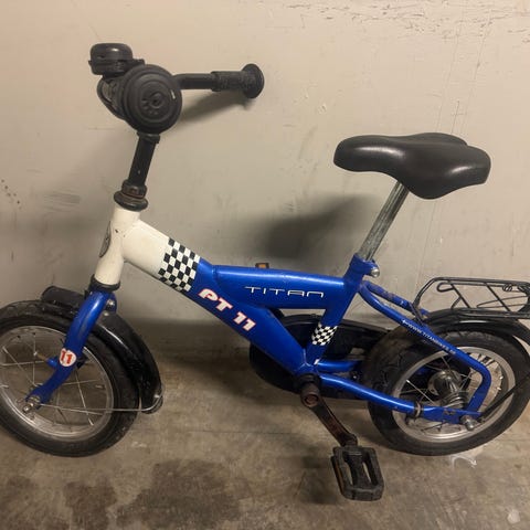 Stabil och säker barncykel med fotbroms, handbroms. Passar barn 90–105 cm. Utrustad med skärmar, stödhjul, heltäckande kedjeskydd, ringklocka och reflexer. Nypris 1200kr