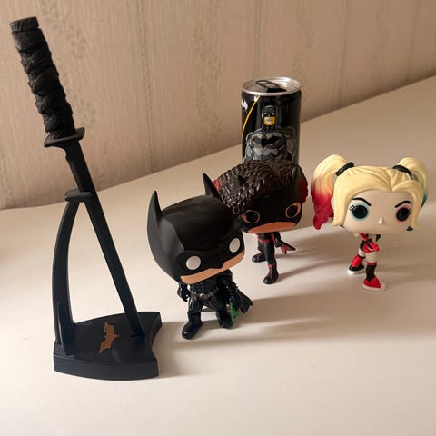 Säljer en samling Funko Pop Blacklight Marvel/DC-figurer.