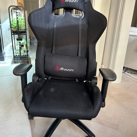 Piranha gamingstol i svart med camo-detaljer. Justerbara armstöd och hög rygg med nack- och svankstöd för skönare sittande vid datorn.