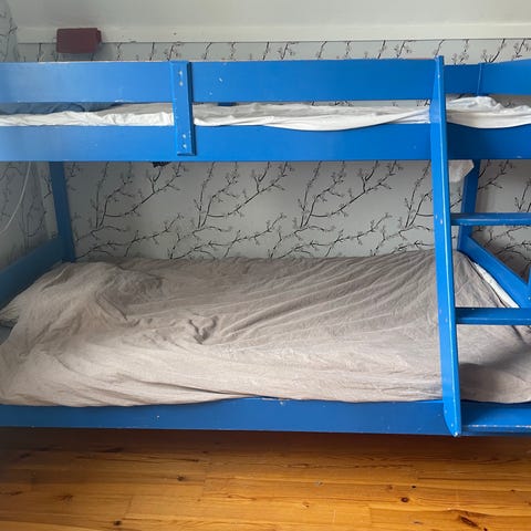 Observera att de två sista bilderna är från Ikeas hemsida. Sängen är i gott skick, stegen går att välja vilken sida man vill ha den monterad på och monteringsanvisningar finns att ladda hem hos Ikea.