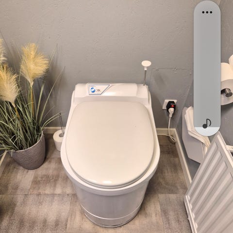 Mulltoa 55ail förmultningstoalett i vit färg med elanslutning. Info och specifikationer finns på etiketten och i pappret som följer med på bilden.