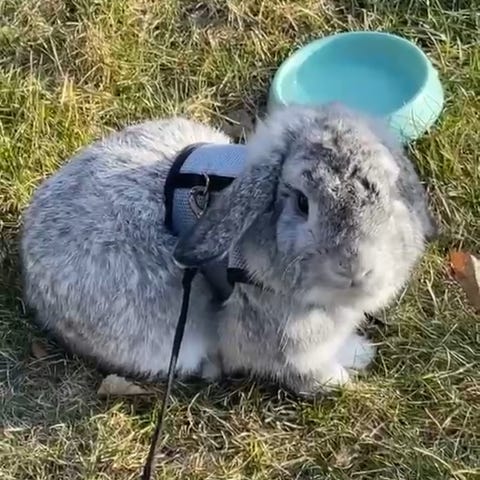 Hon är en smart, social och livfull kanin som tycker om att vara med och utforska. Hon har även varit ute i naturen med sele ibland, vilket hon klarar bra. Hon är nyfiken och uppskattar stimulans och utrymme.