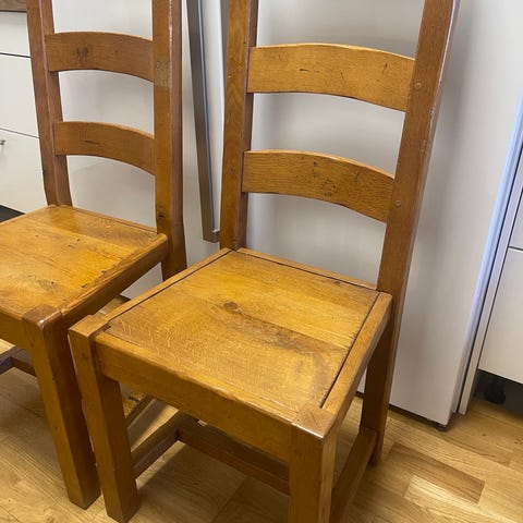 Säljer 3 stycken stabila och rejäla trästolar i klassisk design. Perfekta till matbordet eller som extra sittplatser.