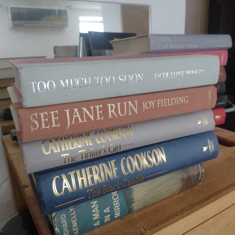 Inbunden utgåva av Joy Fieldings bok See Jane Run på engelska. Hårda pärmar med rygg i rosa/beige ton och guldfärgad text på ryggen.