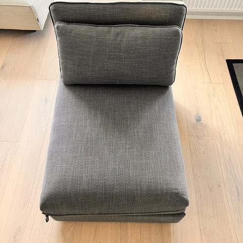 Sparsam använt- som ny. Avtagbar mörkgrå klädsel- tvättbar. Dimensioner ca. 100 cm (med ryggstöd)x 90 cm. Kan enkelt dras ut till 80x200cm säng. Endast avhämtning på Södermalm/Stockholm.
