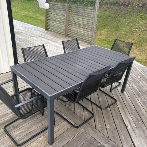 Ser som nytt ut! Mycket lätt att torka av och hålla snyggt o rent. Stabilt och ändå lätt o smidigt. Säljer pga platsbrist på min uteplats.