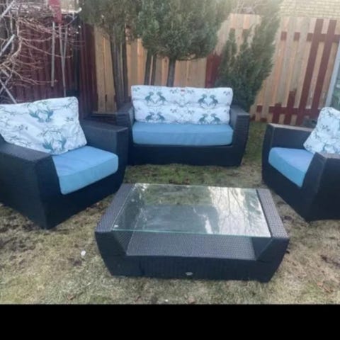 Fåtöljerna och soffbordet är i bra skick. Soffan saknar dock tre pinnar i sitsen så jag säljer fåtöljerna med soffan och soffbord på köpet.