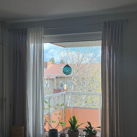 Hemtex gardiner beige 240 cm med Jysk gardinstång