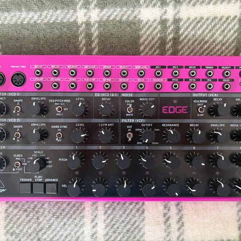 Moog Subharmonicon med flera rattar, knappar och patch-ingångar för att styra ljudet. Perfekt för dig som vill experimentera med sekvenser och modulära kopplingar.
