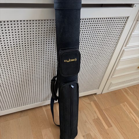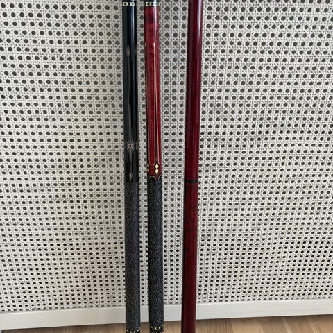 Ställ för biljardköer i trä med rund fot och toppskiva med hål för flera köer. Smidig att ställa vid biljardbordet så köerna står samlat och upprätt.