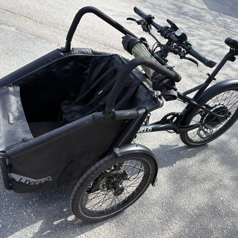 Nu säljer vi vår uppskattade eldrivna lådcykel då vi inte längre behöver den.