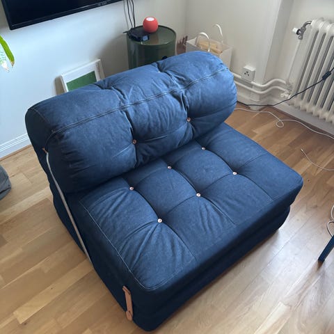 Snygga bäddfåtöljen vårkumla från IKEAs nyproduktion av katalogen från 1973. Lite deformation i sitt dynan som inte märks så tydligt enligt mig, men går att fixa till med lite armstyrka. Inköp för ca. 6 månader sen, varsamt använd. Nypris 2995:-. Finns i Fruängen kan eventuellt hjälpa till med transport för en extra summa.