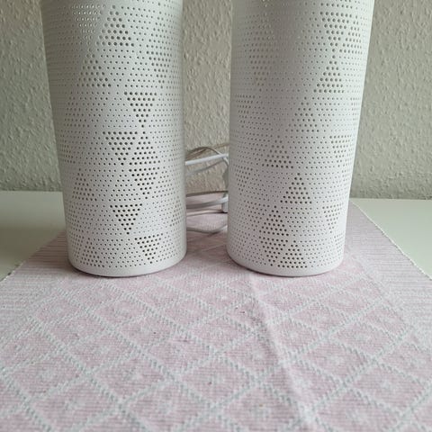 2 stycken bordslampor, skärmen är fluffig och resterande har en guldig färg, glödlamporna ingår