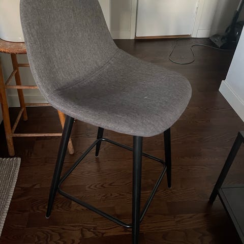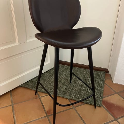En barstol Hype DAN-FORM. Stabil, gedigen och vacker barstol i vintage ljusbrunt och tåligt konstläder med tydliga lädersömmar. Ser ut och känns exakt som läder. Höjd 103 cm, sitthöjd ca 76 cm. Ej använd. Lägsta nypris 3279 kr.