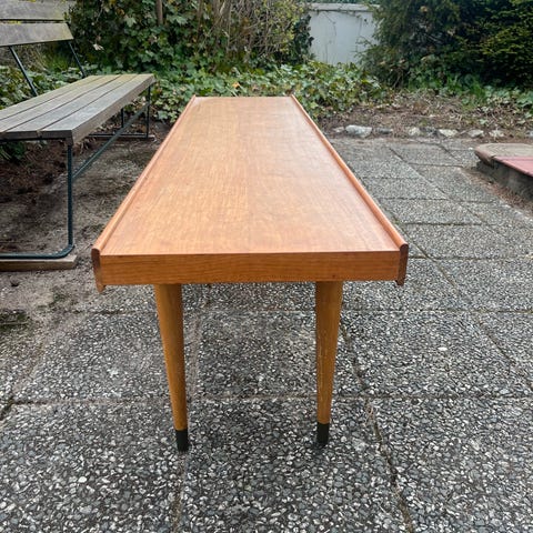 Soffbord teak. Längd 149,5cm, djup 58cm, höjd 55,5cm