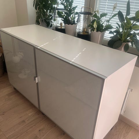 Tv-bänk Ikea bestå med selsviken dörrar i högglans.