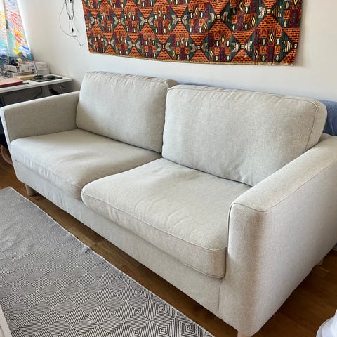 Har några år på nacken så finns slitage men är en kvalitetssoffa i grunden som behållit sin form väldigt fint.