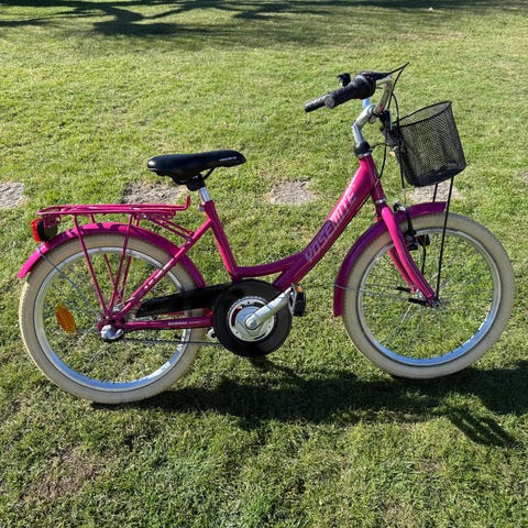 Säljer en fin rosa barncykel, modellen Saga från Crescent, med 20” hjul. Cykeln är 3-växlad och har fotbroms bak samt handbroms fram.