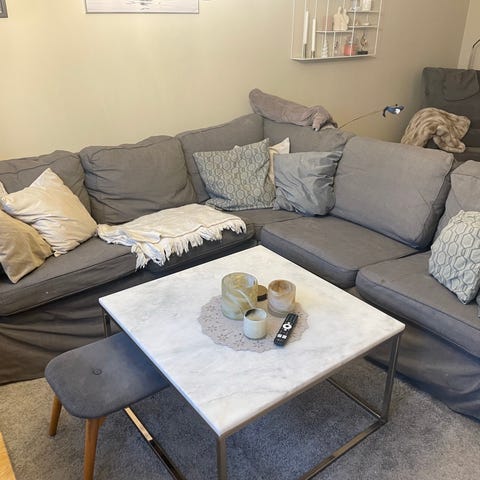 Soffa i bra skick från IKEA. Klädsel sliten på sina ställen, kan behöva ett omtag med noppborttagare eller bytas ut.