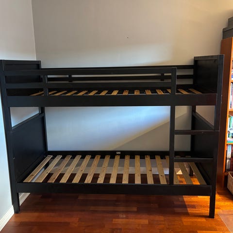 Loftsäng med skrivbord och fotölj/extrasäng säljes. Madrass medföljer.
