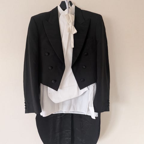 Hel frack inklusive hel svart väst. Äldre modell som är kraftigare och lite tjockare än de moderna. Storlek 52