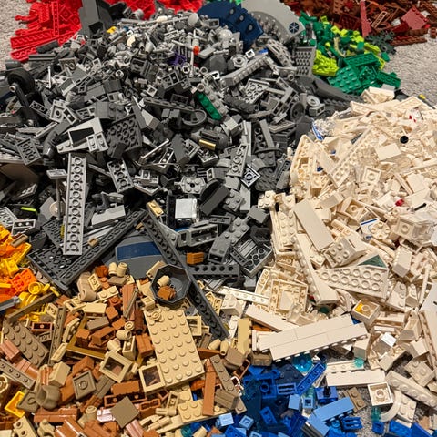 Stort parti blandade LEGO-klossar och delar i olika färger och former. Passar bra om du vill bygga eget och fylla på samlingen med mycket lösa bitar.