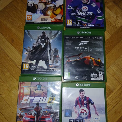 Xbox One konsol med handkontroller och spel