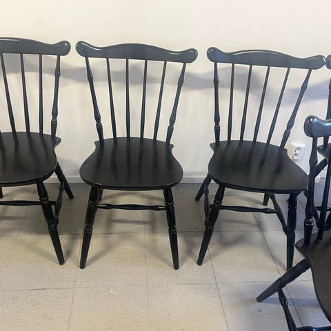 Fyra svartlackade pinnstolar