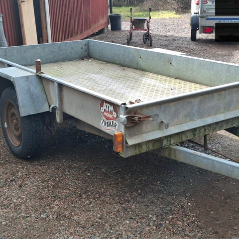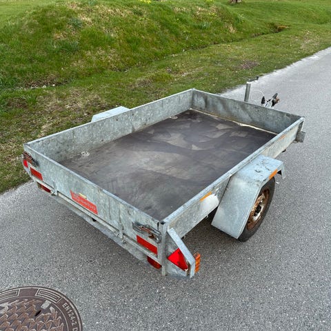 Enkel och rejäl bromsad släpvagn med en ägare sedan ny. Belysning utbytt. Besiktad med fel 1. (fjädring kärv, stum.) inte åtgärdat därmed det billiga priset.