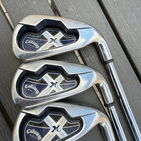 Callaway Fusion järnklubbor, nummer 5, 7, 9 och P. Fina cavity back-huvuden med stålskaft och standardgrepp, klara för nästa runda. Mycket förlåtande klubbor som är perfekta för nybörjare eller dig med högre hcp.