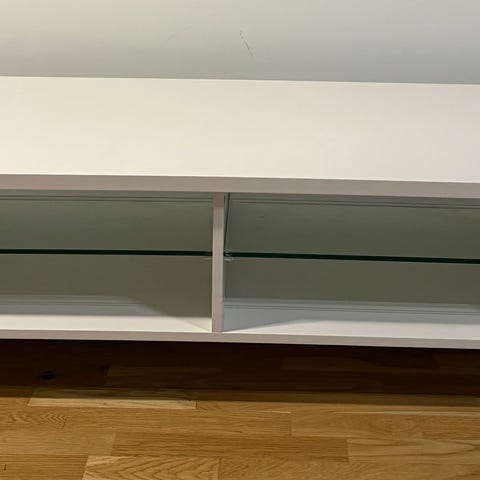 Vit lackerad Tv bänk m krom ben i silver