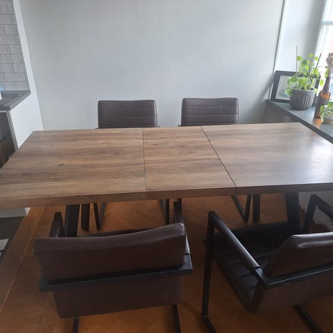 Perfekt för dig som vill ha en komplett matplats med både stil och funktion. Soffan ger gott om sittplatser och bordet kan enkelt förlängas vid behov.